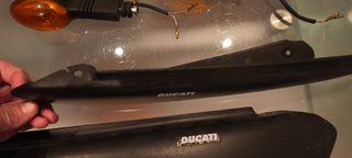 Tegolino y guardabarros trasero para motocicleta Ducati. Desmontado de una Monster 695 Vendo tegolino trasero (guardabarros/soporte de matrícula original) para Ducati Monster 695 (válido también para 620, S2R, S4R). Está en perfecto estado, ideal para volver a poner la moto de estricta serie o para ITV. Incluye: Tegolino/Guardabarros trasero negro original. Luz de matrícula original Ducat