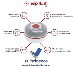 Baliza Help Flash IoT V16. Funciona con pilas (incluidas 4 pilas). Se vende con factura. - Sistema de señalización de emergencia. - Conexión IoT. - Geolocalización integrada. - Diseño compacto y ligero.