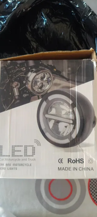 Faro redondo para motocicleta con luz LED y aro de posición. - Diseño moderno y llamativo. - Aro de luz blanca para posición. - Lente reflectante para una buena iluminación.