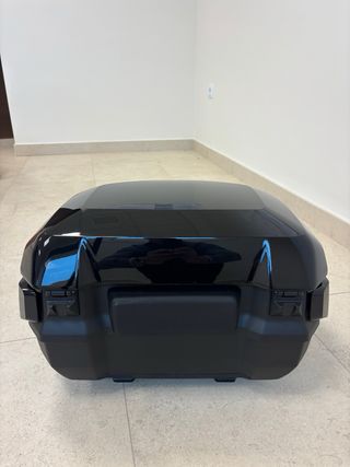 Top case negro para BMW R1300RS. Diseño moderno y funcional. - Acabado negro tormenta brillante metalizado. - Mecanismo de cierre integrado. - Cierre centralizado, luz interior y toma usb. -Paneles protectores laterales en negro tormenta brillante metalizado. -Respaldo acolchado en negro. PVP: 970 eur