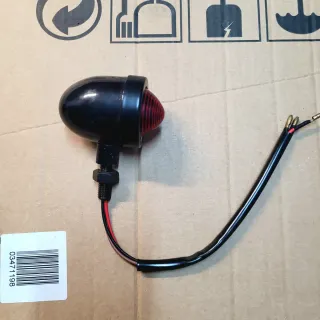 Luz trasera de freno con carcasa negra y lente roja. - Diseño ovalado. - Cableado con conectores. - Montaje con tuerca.