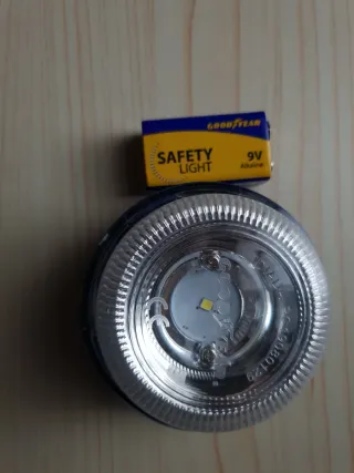 SAFETY LIGHT GOODYEAR Referencia GY01SL Nuevo producto. Sin caja. Luz de señalización en caso de accidentes Varias posiciones, linterna. Hazte visible de forma segura y en segundos, sin necesidad de abandonar tu vehiculo. Señal V16 homologada y autorizada por la DGT sustituira el triangulo de emergencia. NO Geolocalizada. La pila está empaquetada para que no se desgaste. No geocalizada con La DGT. Auténtica Goodyear con la pila a estrenar. Hago envíos por Wallapop