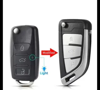 Llave de coche Volkswagen con 3 botones modificada. - Diseño moderno y funcional. - Incluye un indicador de luz.