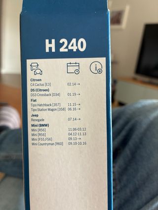 Limpiaparabrisas trasero de la marca Bosch. - Modelo H 240. - Longitud de 240 mm / 9 pulgadas. En una de las fotos se pueden ver modelos compatibles.