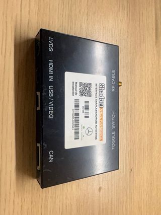 Interfaz multimedia para Mercedes C W205 con compatibilidad CarPlay inalámbrico y Android Auto inalambrico - Conexiones: LVDS, HDMI IN, USB/VIDEO, CAN. - Incluye RF CABLE y TOGGLE SWITCH. - Modelo: NTGS (INTCARPLAYNTG5.2). - Mantiene los menús originales del coche y los mandos originales del volante y cuadro.