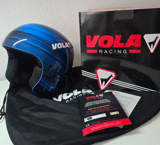 Casco competición VOLA RACING homologado por la FIS. Talla M(56). Viene con caja, funda para guardarlo y manual de instrucciones. Acolchado interior terciopelo competición. Utilizado una vez y esta en perfectas condiciones. Comprado en tienda en febrero. Precio en tienda 200€. Vendo por cambio de talla.