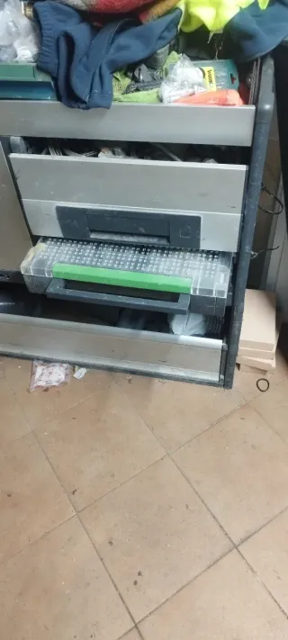 Estantería metálica para organizar herramientas y materiales en furgonetas o talleres. - Estructura robusta de metal. - Múltiples compartimentos y cajones para almacenamiento. - Ideal para optimizar el espacio de trabajo. - Marca Bott - Se vende solo la estantería. Recogida en Bezana, Cantabria