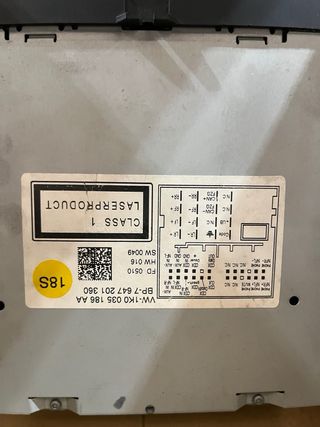Equipo de sonido frontal para Volkswagen. Diseño moderno y elegante. - Botones de control: SOUND, EJECT, RADIO, MEDIA, TP, MENU, FOLDER. - Control giratorio con función de encendido/apagado y volumen. - Botones de navegación: SEEK/TRACK y FOLDER. - Pantalla digital informativa.