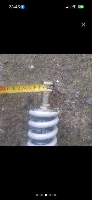 Amortiguador para Suzuki RMX 50. Se incluye cinta métrica para referencia de tamaño. - Diseño con muelle helicoidal. - Cuerpo inferior metálico.