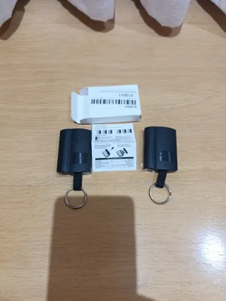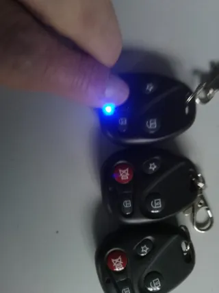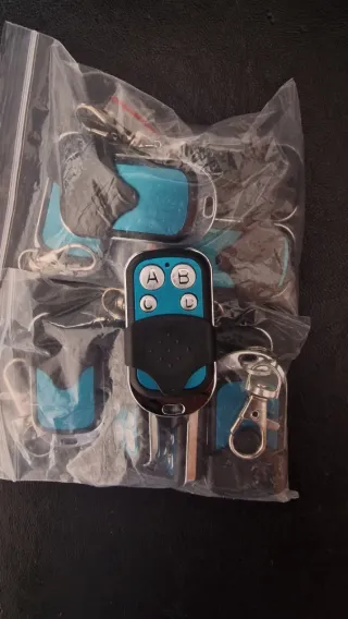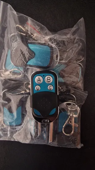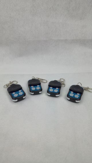 Se venden cuatro mandos para garaje o puerta automática. Son de color negro y azul. - Incluyen llavero. - Diseño compacto.