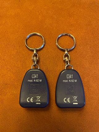 Se venden dos mandos para garaje de la marca Clemsa, modelo N82M. - Incluye dos unidades. - Color azul oscuro. - Con anilla para llavero.