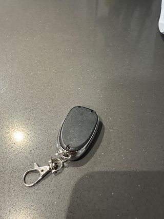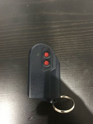 Mando a distancia para garaje con llavero. - Diseño compacto y negro. - Incluye un llavero metálico para fácil transporte.
