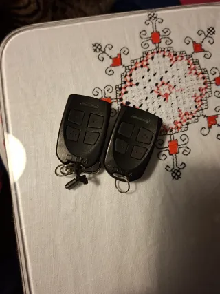 Dispositivo para copiar llaves de garaje. Incluye una unidad principal, dos mandos a distancia y accesorios. Está en buen estado y listo para usar. - Permite clonar llaves de garaje. - Incluye dos mandos a distancia. - Viene con accesorios y cableado.