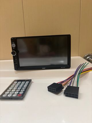 Pantalla de coche marca SANDA, modelo SD-2137. - Incluye mando a distancia. - Incluye cables de conexión.