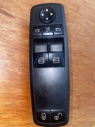 Mando de elevalunas y cierre para Mercedes-Benz W169 del año 2007. Pieza de control para las ventanas y seguros del vehículo. - Botón de control de espejos. - Botones de subida y bajada de ventanas. - Botones de cierre y apertura de puertas.