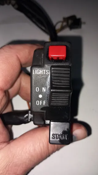 Piña de mando derecha para Suzuki DR Big 800. - Botón rojo de emergencia. - Interruptor de luces (ON/OFF). - Botón de arranque (START). - Cableado incluido