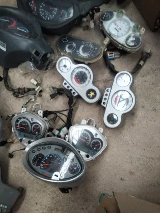 Conjunto de cuadros de mando y velocímetros para motocicletas de diferentes marcas. Piezas de repuesto para tu moto. Honda peugeo Suzuki Kymco vespino Honda Aprilia etcétera - Variedad de modelos y diseños. - Componentes para la instrumentación de la moto.