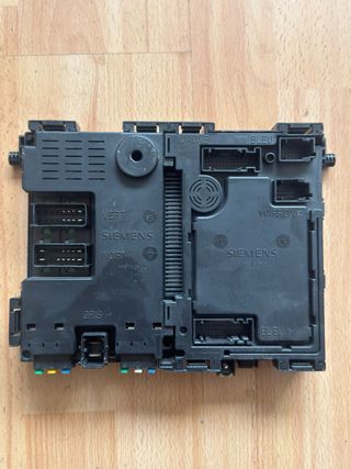 Unidad de Mando BSI (Boîtier de Servitude Intelligent) para Peugeot 206 GTI. - Conexiones marcadas con colores: Jaune, Bleu, Marron, Gris, Vert, Noir. - Fabricado por Siemens.