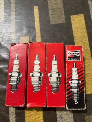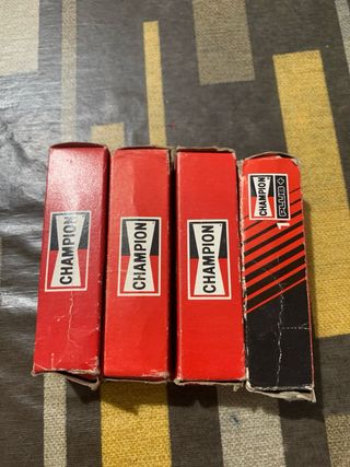 🔧 Lote de bujías Champion – 4 unidades Vendo 4 bujías marca Champion, nuevas sin usar, aún en su caja original. ➡️ 3 bujías iguales y 1 bujía distinta (se aprecia en la foto). ✔️ Marca reconocida y fiable ✔️ Ideales para moto, ciclomotor, coche antiguo o motor pequeño ✔️ Perfectas como repuesto o para tener de reserva ✔️ Cajas con algo de desgaste exterior por el tiempo, pero bujías en buen estado 📦 Se vende el lote completo. 💬 Para cualquier duda, pregunta sin compromiso. Las cajas estan todas rotas pero cierran todas. - Modelo Champion PLUS+ - Diseño clásico de bujía.