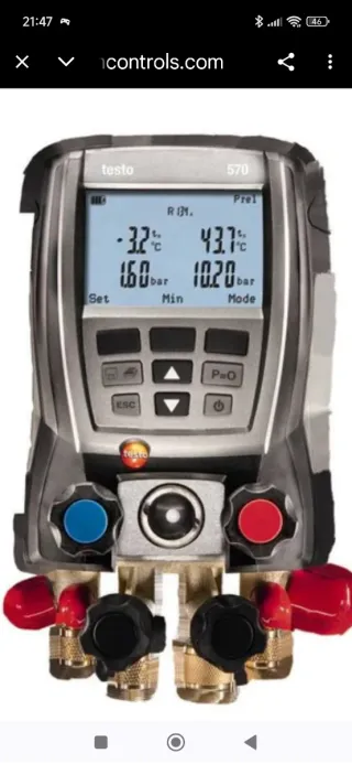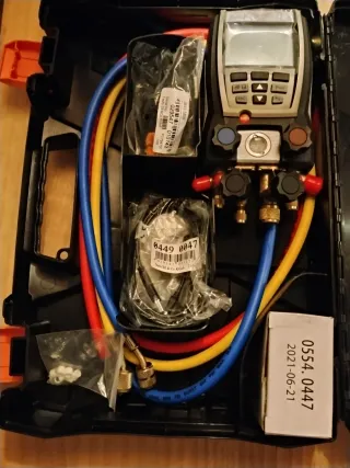 Juego de manómetros testo 550s con conexión bluetooth . Usado pocas veces - Incluye mangueras de carga de refrigerante - Conexiones de latón. - Pantalla digital. - Botones de control.