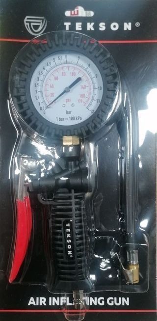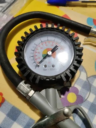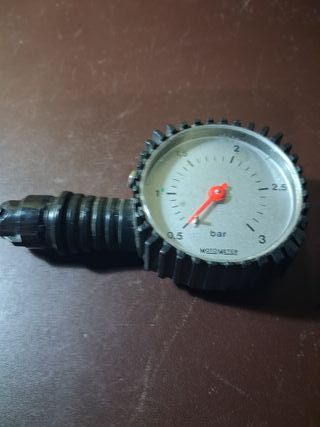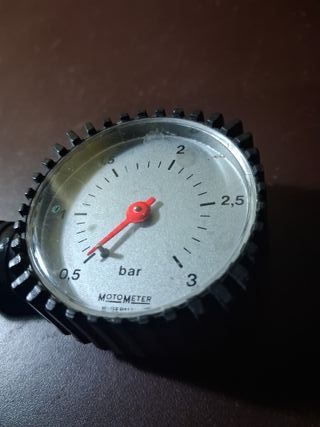 Manómetro de presión de neumáticos de la marca Motometer. Diseñado para medir la presión en bares. 15 eurs Manómetro digital 10 eurs - Indicador analógico con aguja roja. - Escala graduada en bares. - Cuerpo robusto con borde dentado. Mil productos en mi perfil HAGO LOTES C20