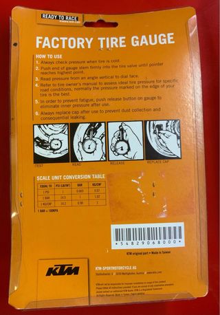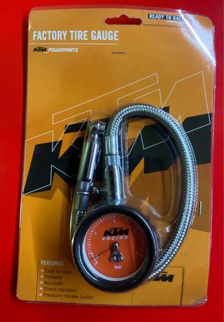 Manómetro de neumáticos KTM Racing Factory. Diseñado para precisión y durabilidad. NUEVO y sin abrir. - Fácil de leer - Portátil - Preciso - Resistente a golpes - Botón de liberación de presión