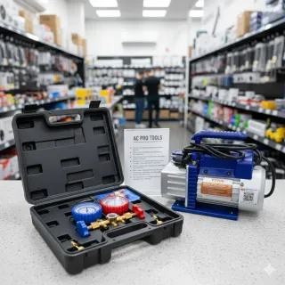 Juego de manómetros para sistemas de aire acondicionado, ideal para profesionales y aficionados. - Incluye manómetros de alta y baja presión. - Mangueras de carga de colores (rojo, azul, amarillo). - Válvulas de control para el manejo del refrigerante. - Estuche rígido para transporte y protección.
