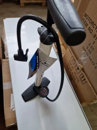 Bomba de pie (inflador) de la marca Michelin, ideal para inflar neumáticos. Incluye un manómetro para controlar la presión. - Diseño plegable y compacto. - Manómetro integrado para mediciones precisas.
