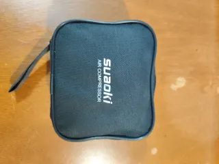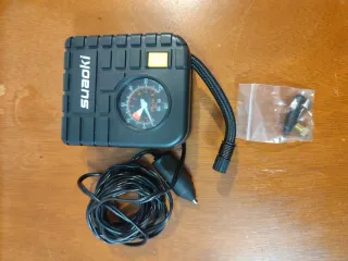 Compresor de aire portátil con manómetro para medir la presión. - Diseño compacto y fácil de transportar. - Incluye funda protectora. - Marca: SUAOQI