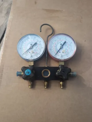 ❄️Bomba de vacío con juego de manómetros para aire acondicionado y refrigeración. ✅️Equipo completo nuevo sin estrenar, ideal para carga, mantenimiento y diagnóstico de sistemas A/C. 📦Incluye bomba de vacío, manómetros, mangueras y maletín de transporte. 🏆(Regalo 2 conexiones 1/4 a 5/16 R410A y R32, 2 Conexiones para A/C del Coche 🔥Listo para usar. 🤝Entrega en mano o envío por Wallapop.