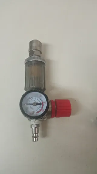 Regulador de presión Manometro para pistola de pintura neumatica Controlar y regula la presión de entrada de aire de forma precisa y continua obteniendo mejor efecto de pulverizacion de la pintura. Puerto roscado G1/4 "universal para pistolas pintura neumaticas Rango de presión: 0-10BAR (0-150PSI) Articulo nuevo a estrenar Recoger en mano en Valdemoro o envio por la aplicacion.