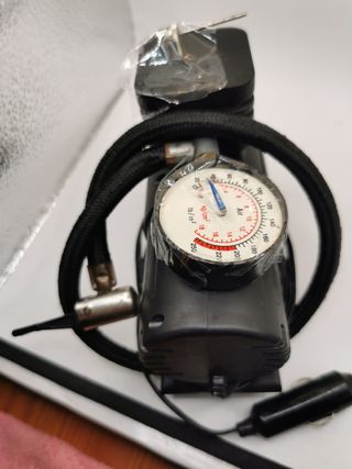 Compresor de aire portátil para coche, conexión a toma 12V (mechero). Ideal para inflar neumáticos, bicicletas, balones y otros inflables en emergencias o mantenimiento puntual. Incluye manguera reforzada, cable largo, adaptador metálico y manómetro analógico integrado. ⚠️ Importante: la aguja del manómetro es improvisada, por lo que la medición puede no ser 100 % precisa. El compresor funciona, pero se recomienda usar un manómetro externo si necesitas presión exacta. Estado general correcto, con señales normales de uso. Perfecto como compresor de respaldo para el coche, viajes o emergencias. ✅ Envío disponible 📦 Se entrega tal