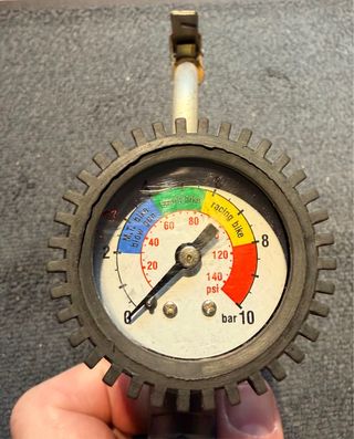 Manómetro para medir la presión de los neumáticos de coches o motos. Permite verificar la presión en PSI y BAR. - Escala en PSI (hasta 140) y BAR (hasta 10). - Indicaciones para M.T. bike, blow gun, y racing bike. - Diseño robusto con borde dentado.