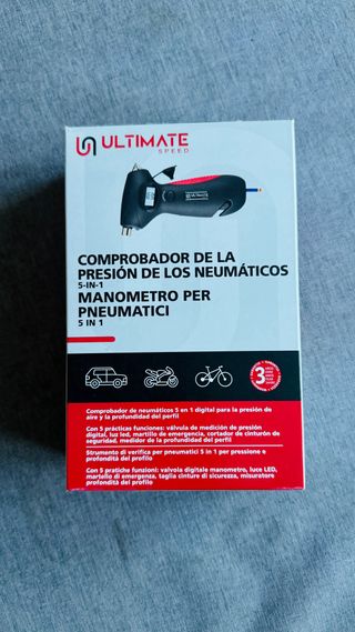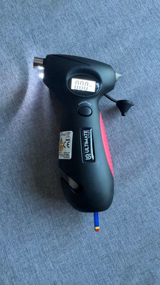 Este dispositivo multifunción es un manómetro digital para la presión de los neumáticos. - Incluye linterna LED. - Incorpora cortador de cinturón de seguridad. - Dispone de martillo rompecristales. - Con medidor de banda de rodadura - Función de encendido/apagado automático.