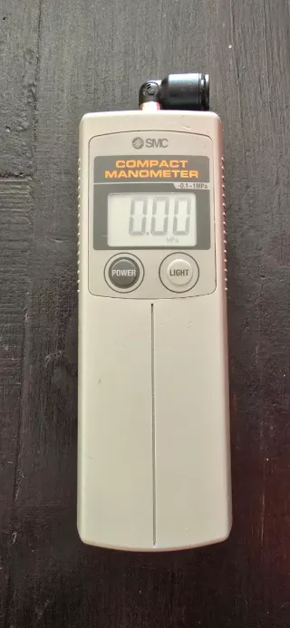 Manómetro digital compacto SMC PPA 100. - Rango de medición: -0.1 a 1MPa. - Pantalla digital clara. - Botones de Power y Light. #industria #medicion #Manometro #Compresor #manometro digital.pie de rey.