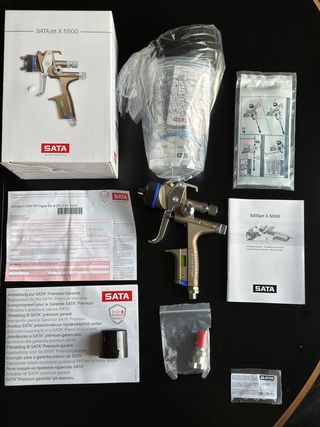 Pistola de pintura Sata Jet X5500 RP Digital. EL PRECIO 1.050 Juego nuevo y original, sin estreńar todo nuevo. Venta solo a la persona, NO ENVIO. Un adaptador para pps en completo. Un manómetro electrónico. - Modelo: X5500 RP Digital. - Incluye vaso y accesorios. - Documentación de garantía SATA Premium. No leer Pistola sata para barnizar. Pistola sata jet. Pintura de coche. Pistola Sata Jet X. Rp. Pistola Devilbiss. Pistola Sagola. Pistola Iwata. Pistola Pulverizadora Sata. Pistola de pintura de coche Pistola para pintar