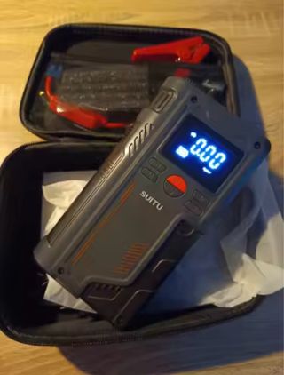 Arrancador portatil para vehículos 12V diesel hasta 3L y gasolina hasta 5L con pinzas inteligentes de protección. Bateria recargable mediante USB tipo C. Compresor inflador de neumáticos presión 150 PSI con manómetro pantalla digital. Apagado automático para hinchado de ruedas de coche, moto, bicicletas, flotadores, colchonetas, balones y pelotas, etc. Función powerbank para cargar teléfonos u otros dispositivos y linterna led de emergencia. 📝Para otras cantidades contactar.