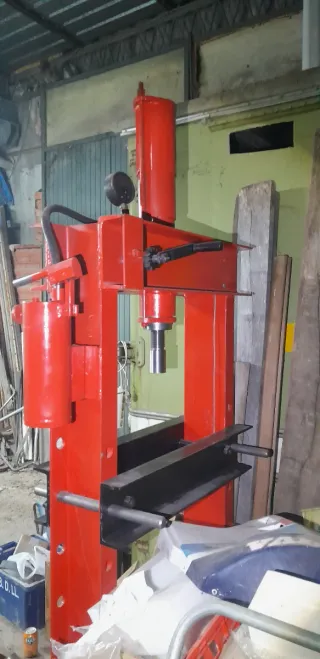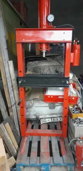 Prensa hidráulica de 20 toneladas, ideal para trabajos en taller.(no respondo a ofertas) - Estructura robusta de color rojo. - Incluye manómetro para control de presión.