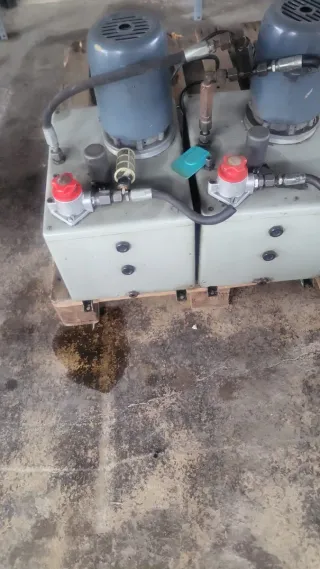 Motor hidráulico completo. - Incluye bomba y manómetro. - Componentes eléctricos visibles.