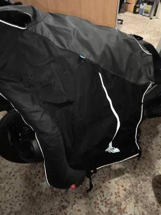 Manta térmica original Tucano Urbano modelo Termoscud R16. - Color negro. - Fabricada en material resistente. - Incluye correas de sujeción. 🔹 Estado real según fotos: • Uso normal de varios inviernos • Marcas estéticas superficiales (ver fotos) • Sin roturas, costuras y anclajes en buen estado • Forro interior térmico en muy buen estado • Sistema S.G.A.S. (antiflameo inflable) completo y funcional 🔹 Características • Sistema HYDROSCUD®: impermeable, cortaviento y térmico • Cubre-asiento integrado • Ajuste perfecto al modelo (no universal) • Ideal para invierno y uso diario 📦 Se entrega con la bolsa original Tucano