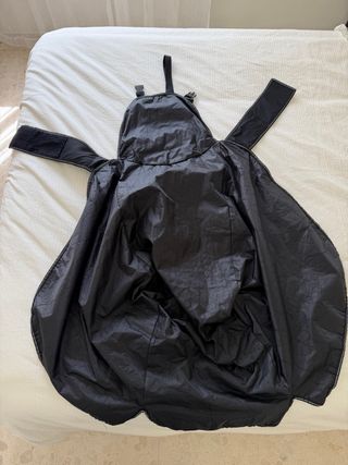 Cubierta térmica para moto Tucano Urbano, color negro. Está en buen estado, aunque tiene algunas marcas de uso. - Ideal para proteger tu moto del frío y la lluvia. - Se adapta a la mayoría de las motocicletas. - Incluye dos bolsas laterales.