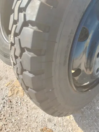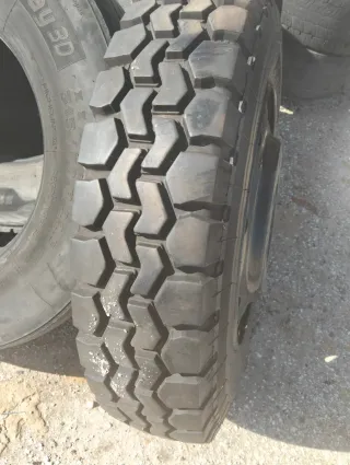 Neumáticos de 22.5 pulgadas con 8 agujeros, ideales para vehículos 4x4. - Medida: 22.5 R9 - Diseño robusto para tracción en terrenos difíciles. - Compatibles con llantas de 8 agujeros.
