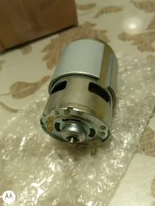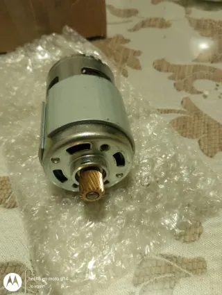 Motor DC con engranaje metálico dorado. - Cuerpo principal de metal plateado. - Detalle de engranaje visible en el eje.