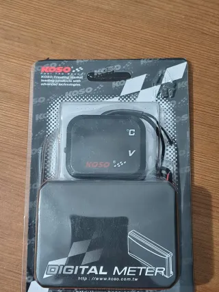 Medidor digital Koso que muestra voltaje y temperatura. - Pantalla digital. - Incluye cableado.