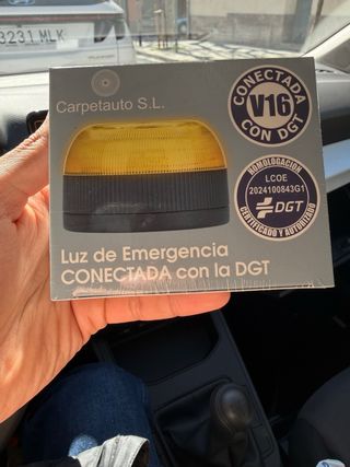 Luz de emergencia V16 conectada con la DGT, homologada. - Homologación LCOE 2024100843G1. - Certificado y autorizado por la DGT. - Marca Carpetauto S.L.