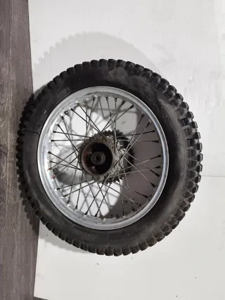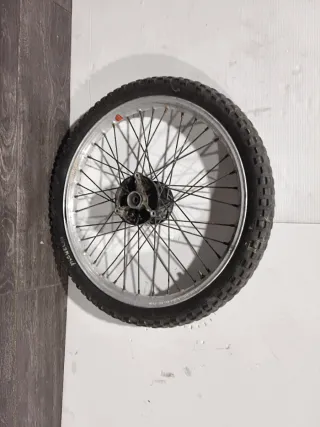 Rueda delantera para ciclomotor universal, adaptable a varias motos. Rieju, derbi, Puch, Yamaha dt..... Tal y como se ve en las fotos. CRUZ BIKES. Somos tienda en mataro, via sergia, 67. 722443741 aitor. ⬆️