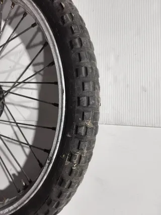 Rueda delantera completa para Montesa Cota 247. Rueda de 21. Con algunos llantazos y una fisura en el aro. Tal y como se ve en las fotos. CRUZ BIKES. Somos tienda en mataro, via sergia, 67. 722443741 aitor. ⬆️