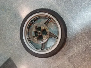 Rueda delantera para Kawasaki GPZ 500, doble disco. Tiene un llantazo. Tal y como se ve en las fotos. CRUZ BIKES. Somos tienda en mataro, via sergia, 67. 722443741 aitor. ⬆️