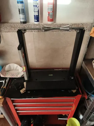 Equipo para el montaje y equilibrado de neumáticos. - Estructura robusta de color rojo. - Incluye correas de sujeción. - Base estable para su uso.com sus palancas
