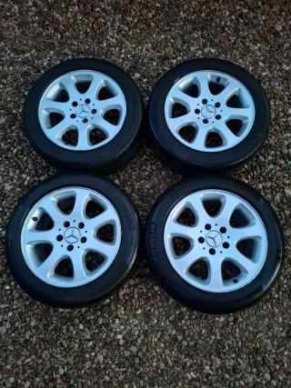 Juego de 4 llantas de aleación de Mercedes-Benz con 4 neumáticos Michelin, 2 al 90% y 2 al 60%. Doy otros 2 neumáticos de la misma medida y misma marca. Medida del neumático: 205/55 R16.